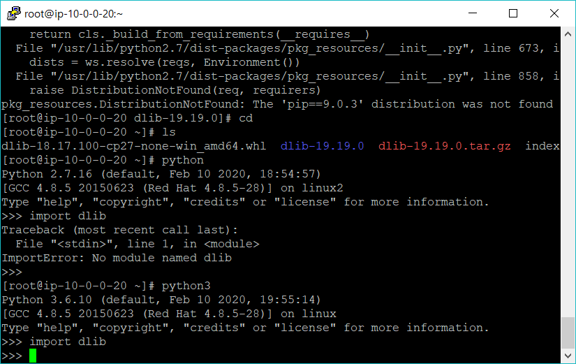 dlib-19.19.0์ tar.gzํ์ผ์ ์ด๋ฏธ wget์ผ๋ก ๋ฐ์์ ์์ถ์ ํ์ด ๋์ ์ํ์๊ณ , setup.py์ buildํ๊ณ installํ๋ ๊ณผ์ ์์ ๋งํ๋ ๊ฑฐ๋ผ build๋ถํฐ ๋ค์ ์์ํ๋ค.